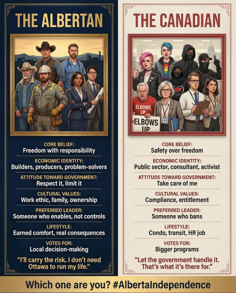 Recent, conturi de pe rețelele sociale afiliate mișcării MAGA au început să promoveze o viziune asupra Albertei ca fiind o provincie „oprimată și exploatată” de restul Canadei. Meme-uri și mesaje similare au fost create și distribuite de conturi atât din Canada, cât și din Statele Unite.