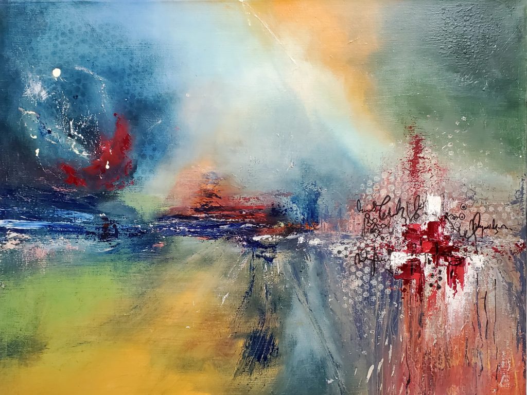 Am introdus nu de mult o caligrafie voit indescifrabilă, care pare izbitoare la prima vedere și îndeamnă la o descifrare inutilă. Intenția mea este de a realiza un script vizual al unei limbi uitate sau a unor gânduri șoptite care să dea o nuanță profund personală sau poetică, o dovadă a ceva ce a fost cândva rostit și acum abstractizat. Este la prima vedere doar un peisaj, dar unul abstract și emoțional”, explică Maggie Romanovici, devenită recent membră a asociației ArtTram, subliniind felul în care tehnica stratificării și a caligrafiei vizuale transformă peisajul într-o experiență poetică și introspectivă, invitând privitorul să descopere ritmul ascuns al culorilor și semnelor.