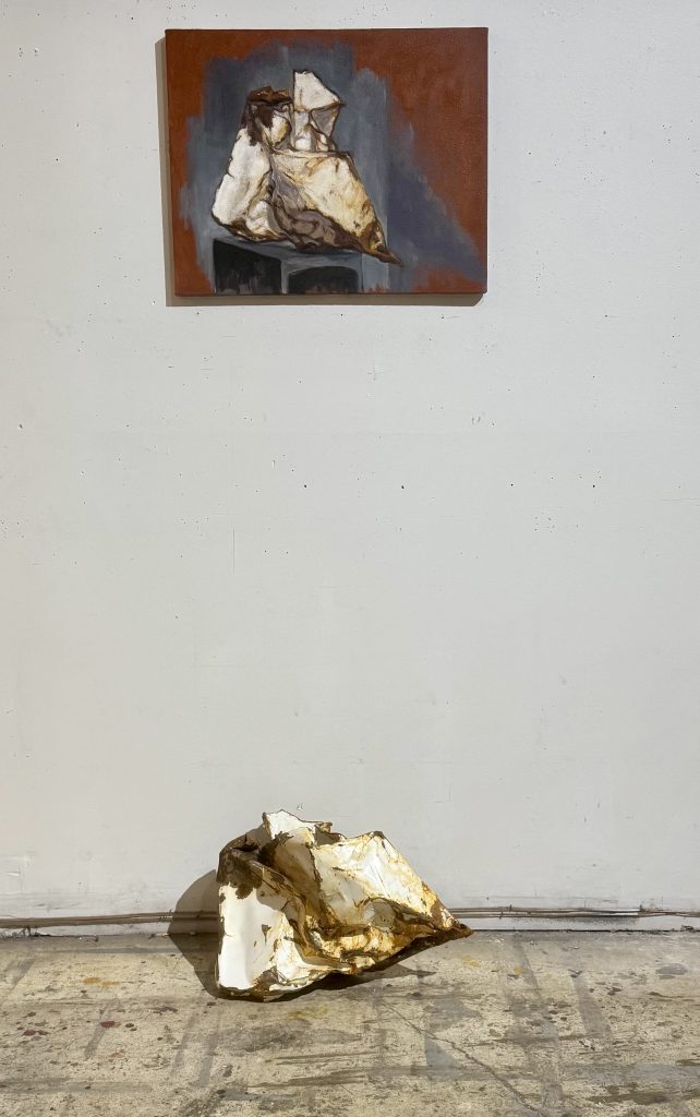 În cadrul expoziției, Peter Krausz prezintă două lucrări reunite sub titlul Portrete după obiecte găsite, inspirate, exact așa cum titlul sugerează, de obiecte descoperite chiar în perimetrul Alexandra-Marconi. Sub fiecare din aceste tablouri, realizate într-o tehnică desăvâșită în ulei pe pânză, „tronează” respectivele obiecte: o țeavă îndoită și o pungă boțită de hârtie. Frumusețea și rigoarea picturii contrastează deliberat cu banalitatea și precaritatea modelului real, care altfel ar fi sfârșit în containerul de reciclare. Peter Krausz demonstrează în acest fel ce este cu adevărat o operă de artă, care exceleză prin tehnică și finețe, în opoziție cu modelul original care l-a inspirat.